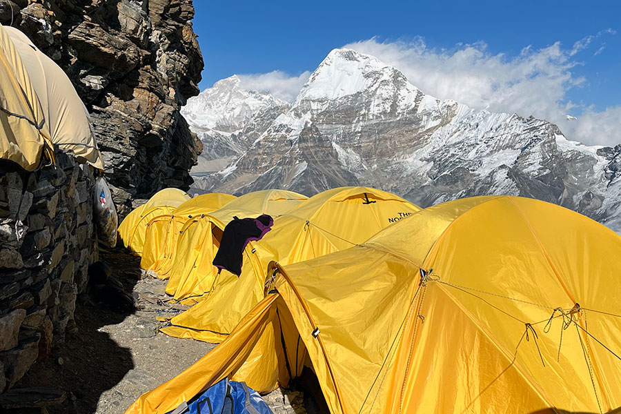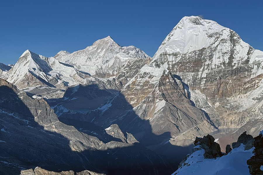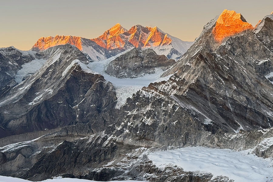 Lobuche's twin summits tower high above the moraine of the Khumbu Glacier near Everest Base Camp. The West Peak (20,160 feet) is considered a difficult, technical climbing objective. Our route ascends the more straightforward East Peak (20,075'), which is considered a trekking peak.