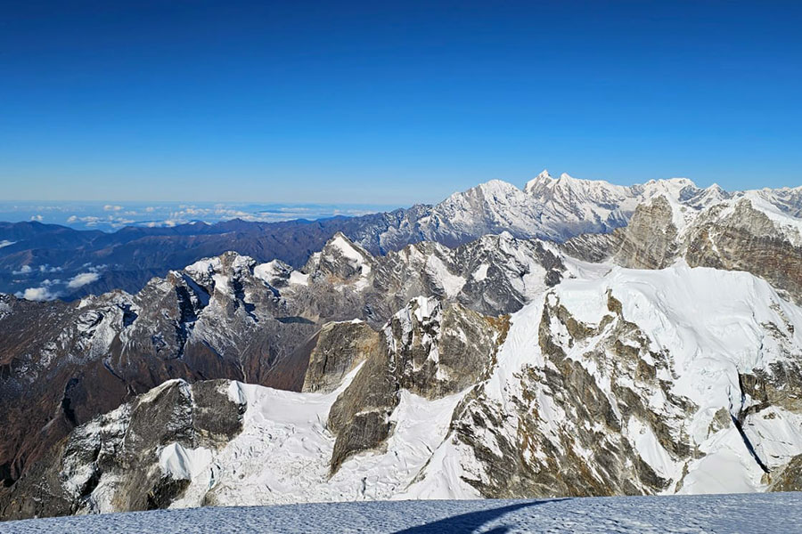 Today is the important day that we wake up early in the morning with hot cups of tea and start heading out into the cold on our way to the summit of central Mera Peak. We climb up steep way of around 30 and 40 degrees. The route is still non-technical as we climb slowly but surely higher into the ever-thinning air. extraordinary view of the Eastern Himalayas: Cho Oyu, Ama Dablam, Everest, Nuptse, south face of Lhotse, Baruntse, Makalu, Kangchengjunga... one of the most beautiful views in the entire Himalayas. At the foot of the final steep summit cone, we may attach to a fixed rope depending on conditions. We spend some time taking it all in before we finally descend back down to Khare for our overnight at lodge which is about 2 hour descent. This is a very long but satisfying day.